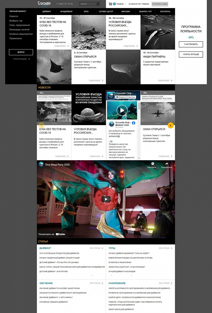 - Внедрение на сайте продажи курсов обучения дайвингу;