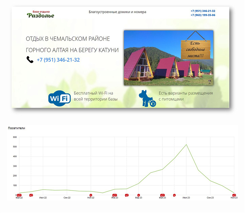 Лендинг (одностраничный сайт) турбазы в Чемальском районе Республики Горный Алтай